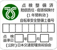 ※ TSマークの保険の有効期間は、1年間です。1年経過後は、再度整備点検を受け、TSマークを貼りましょう。